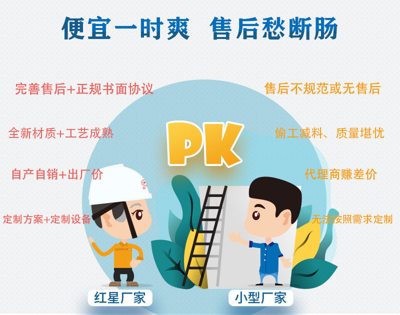 小廠家:建材市場(chǎng)淘一些便宜的材質(zhì)或零件,生產(chǎn)工藝不夠規(guī)范,或二手舊設(shè)備組裝,經(jīng)不起時(shí)間的考驗(yàn)。
